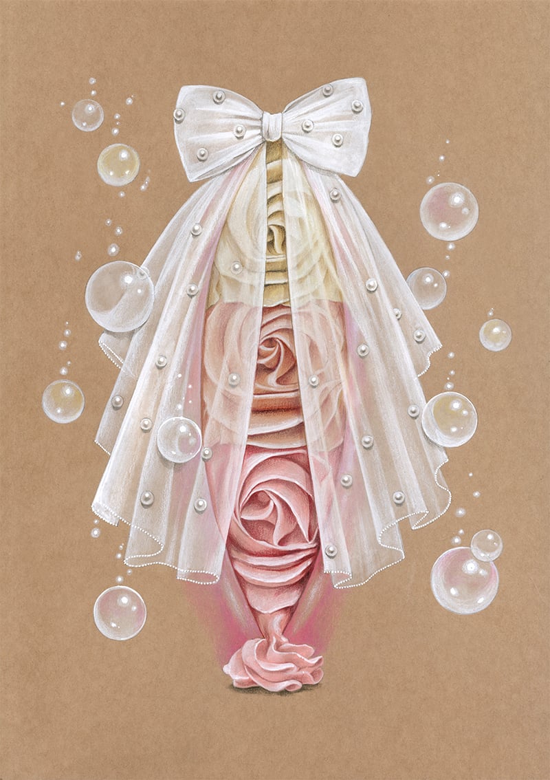 Watercolor, acrylic, colored pencils on paper of 380g